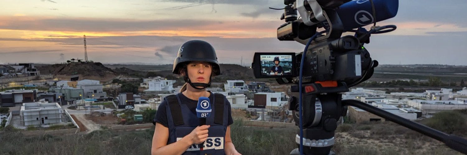 Praktisch von Anfang an erleben Zuschauer der ARD eine krisenfeste und unerschrockene Korrespondentin, die sich nicht scheut, Dinge beim Namen zu nennen. Wenn es um die Massaker der Hamas und ihre Terror-Herrschaft in Gaza geht, fällt das nicht schwer. Wenn eine deutsche Korrespondentin auch kritisch über Israels Politik und Kriegsführung berichtet, macht das schon eher Probleme. Auch deutsche Journalist:innen stehen im Kontext der deutschen Geschichte.